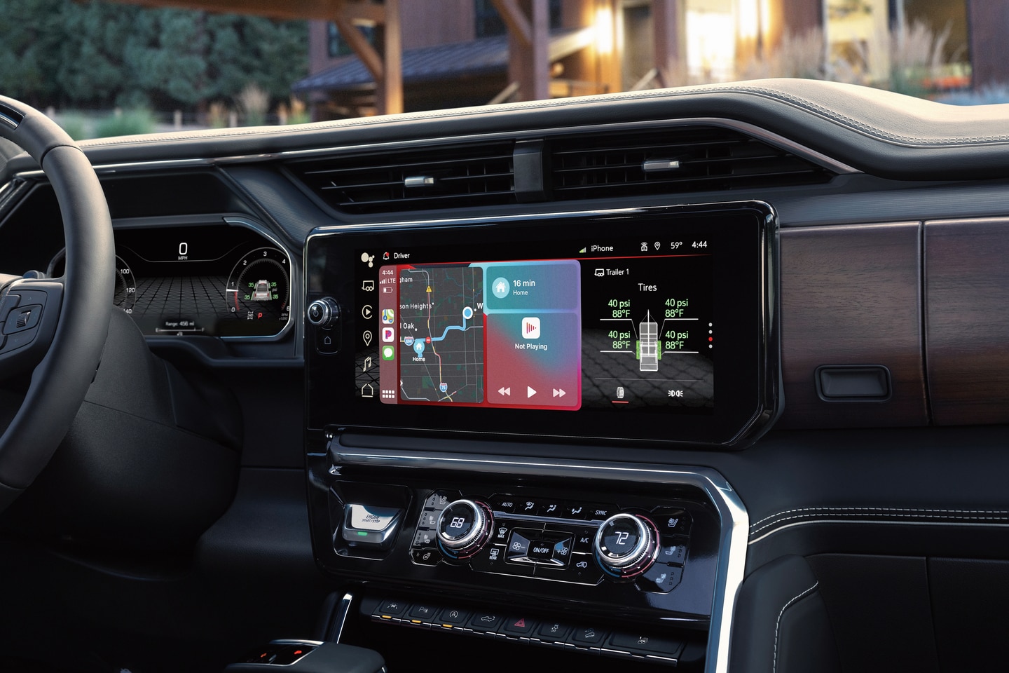 Premium models can be equipped with the 6.2-liter EcoTec3 V8, generating an impressive 420 horsepower and 460 pound-feet of torque. Drivers who want added diesel power will love the the 3.0-liter Duramax Turbo-Diesel I6, which provides 305 horsepower and a substantial 495 pound-feet of torque. All engines pair with either an 8-speed or 10-speed automatic transmission, ensuring smooth power delivery and optimal efficiency.