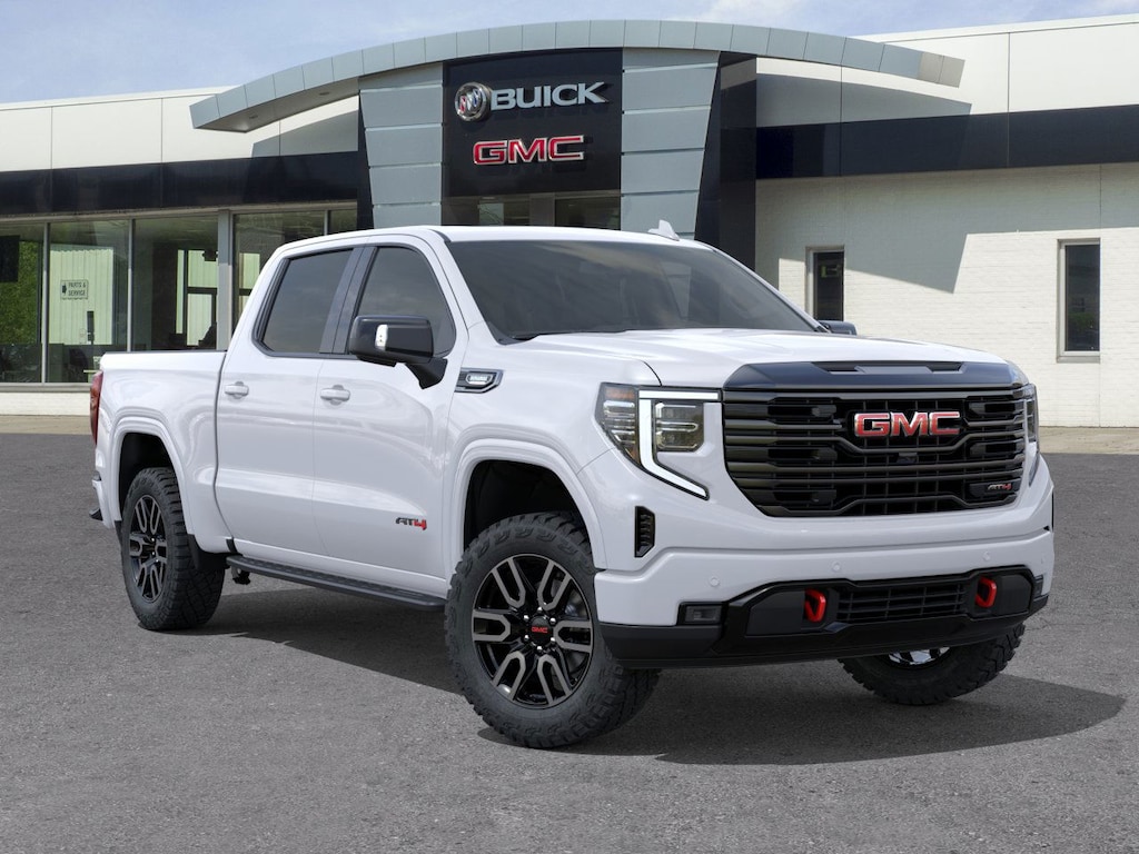 Summit White 2026 GMC Sierra 1500 AT4 4WD 10-Speed Automatic 3.0L I6 10-Speed Automatic, 4WD, Jet Black With Kalahari Accents Leather, 120-Volt Bed Mounted Power Outlet, 120-Volt Interior Power Outlet, 2 Charge/Data USB Ports Inside Center Console, 2 Type-C Charge-Only Rear USB Ports, 2 USB Ports, 220 Amp Alternator, AT4 Preferred Package, AT4 Premium Package, Auto-Locking Rear Differential, Bed View Camera, Black Chrome Grille Insert Bars, Color-Keyed Carpeting Floor Covering, Deep-Tinted Glass, Electric Rear-Window Defogger, Floor-Mounted Center Console, Front Rain-Sensing Wipers, HD Surround Vision, Heated 2nd Row Outboard Seats, Heavy-Duty Air Filter, Hill Descent Control, Hitch Guidance, Hitch View, Integrated Trailer Brake Controller, LED Cargo Area Lighting, Multicolor 15 Diagonal Head-Up Display, OnStar Services Capable, Perimeter Lighting, Power Door Locks, Preferred Equipment Group 4SB, Premium Bose 7-Speaker Sound System, Push Button Start, Rear Camera Mirror, Rear Cross Traffic Braking, Rear Pedestrian Detection, Rear Wheelhouse Liners, Red Recovery Hooks, Remote Vehicle Starter System, Steering Wheel Audio Controls, Technology Package, Trailer Camera Provisions, Trailer Side Blind Zone Alert, Trailering Package, Universal Home Remote, Wheels: 20 x 9 Machined Aluminum, Wi-Fi Hotspot Capable, Wireless Apple CarPlay/Wireless Android Auto, Wireless Charging.