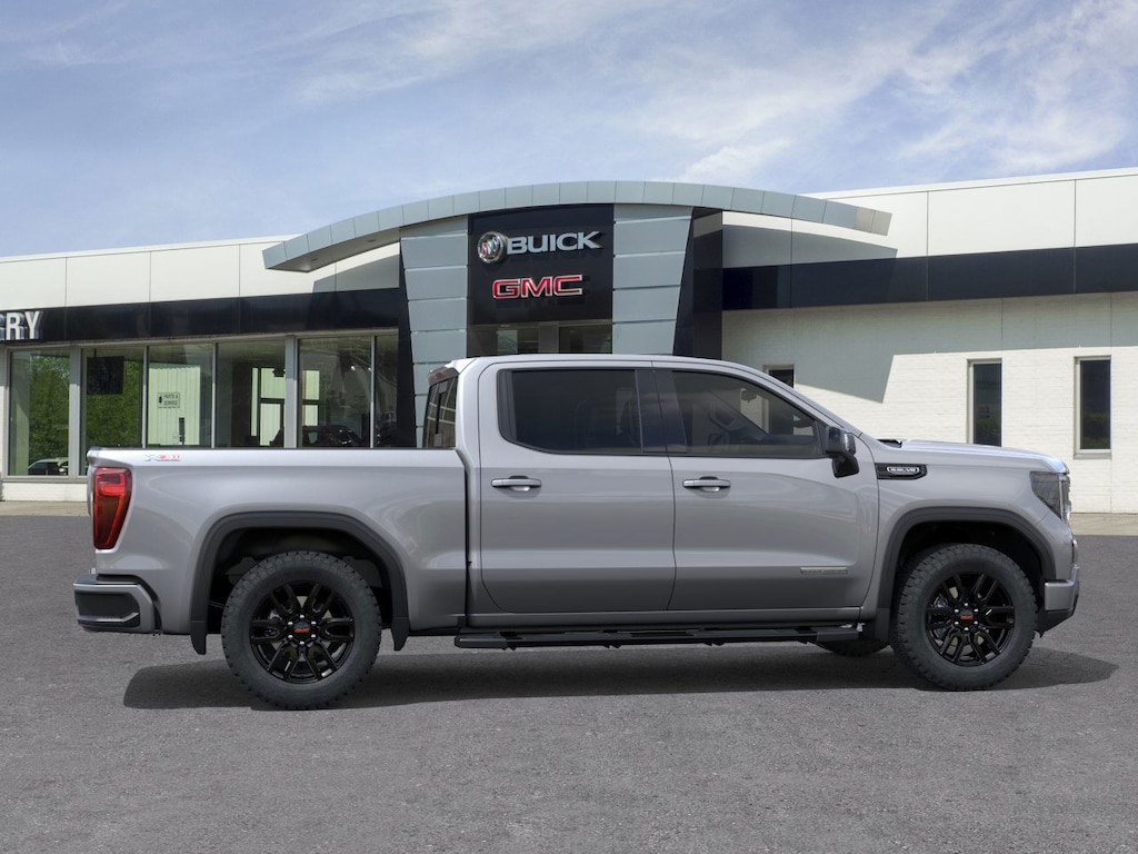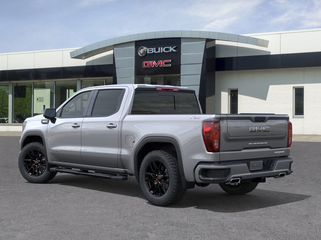 Sterling Metallic 2026 GMC Sierra 1500 Elevation 4WD 10-Speed Automatic EcoTec3 5.3L V8 10-Speed Automatic, 4WD, Black Leather, 120-Volt Bed Mounted Power Outlet, 120-Volt Interior Power Outlet, 2 Charge/Data USB Ports, 2 Type-C Charge-Only Rear USB Ports, 6-Speaker Audio System Feature, Adaptive Cruise Control, Auto-Locking Rear Differential, Color-Keyed Carpeting Floor Covering, Deep-Tinted Glass, Dual Exhaust System, Electric Rear-Window Defogger, Elevation Premium Package, Front Frame-Mounted Black Recovery Hooks, Front Rubberized-Vinyl Floor Mats, HD Rear Vision Camera, HD Surround Vision, Heavy-Duty Air Filter, High Capacity Suspension Package, High Gloss Black Mirror Caps, Hill Descent Control, Hitch Guidance, Hitch View, Integrated Trailer Brake Controller, Leather-Appointed Seat Trim, LED Cargo Area Lighting, Navigation System, Off-Road Suspension, OnStar Services Capable, Perimeter Lighting, Power Door Locks, Preferred Equipment Group 3SB, Preferred Package, Premium Bose 7-Speaker Sound System, Push Button Start, Rear Cross Traffic Braking, Rear Pedestrian Detection, Rear Rubberized-Vinyl Floor Mats, Rear Wheelhouse Liners, Remote Vehicle Starter System, Sierra Safety Plus Package, Spray-on Pickup Bedliner with GMC Logo, Steering Wheel Audio Controls, Trailer Camera Provisions, Trailer Side Blind Zone Alert, Trailering Package, Universal Home Remote, Wi-Fi Hotspot Capable, Wireless Apple CarPlay/Wireless Android Auto, Wireless Charging, X31 Hard Badge, X31 Off-Road Package.