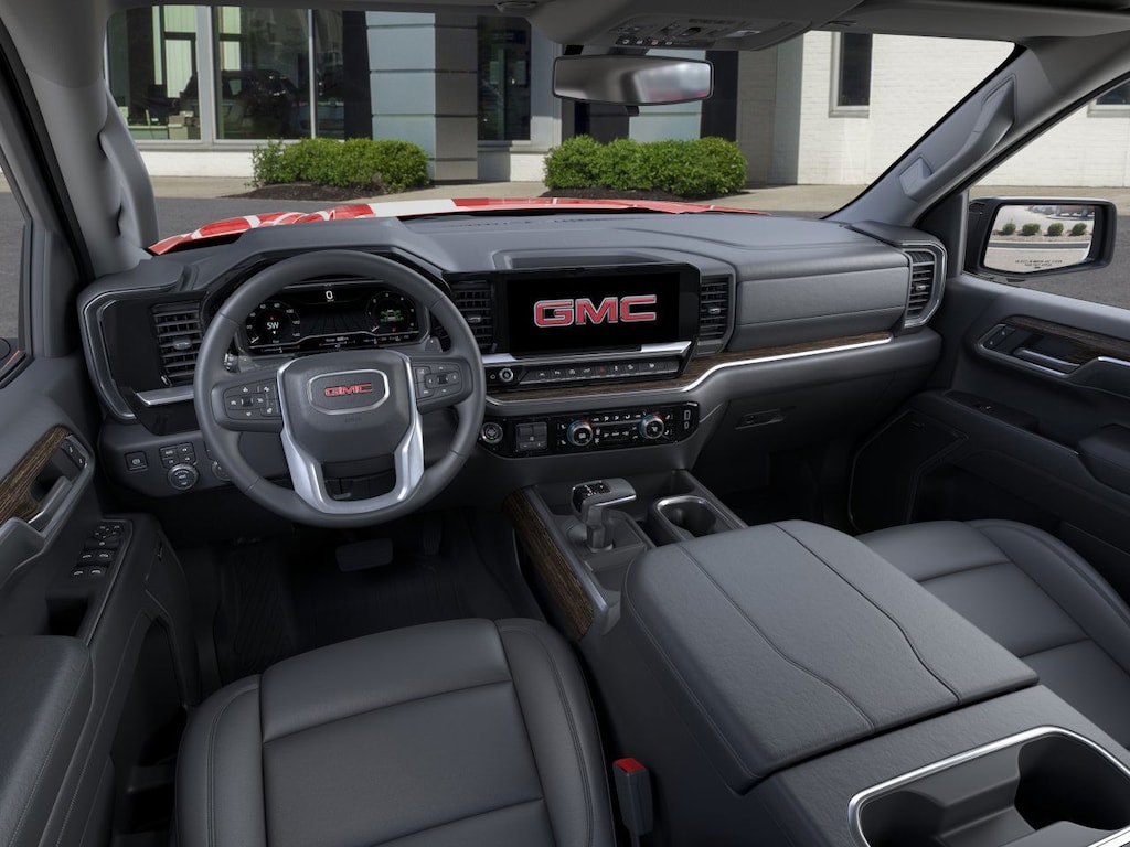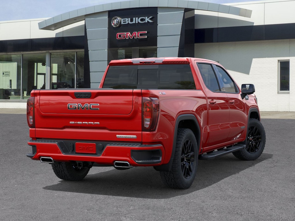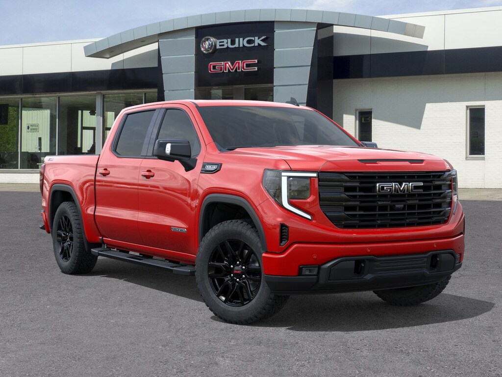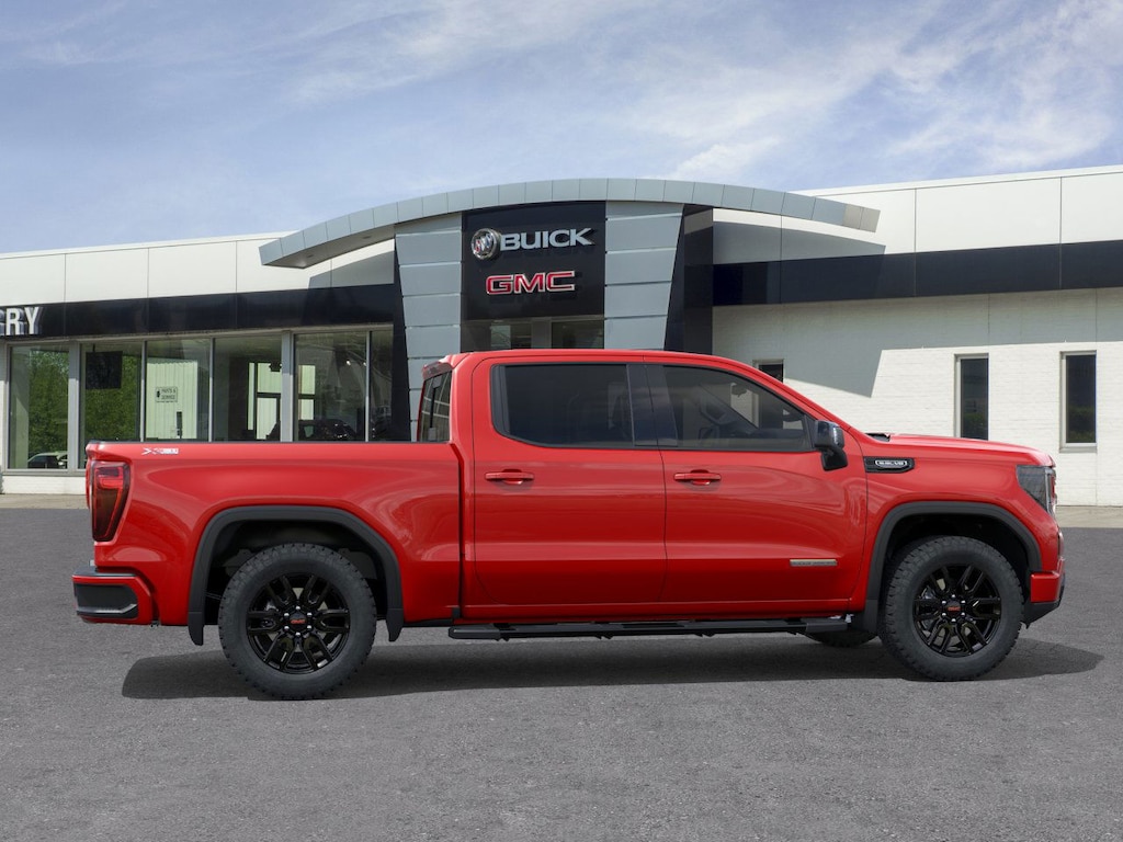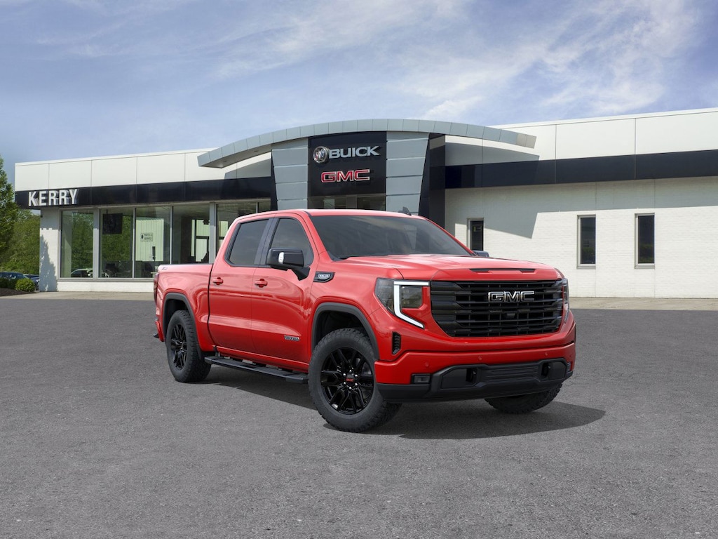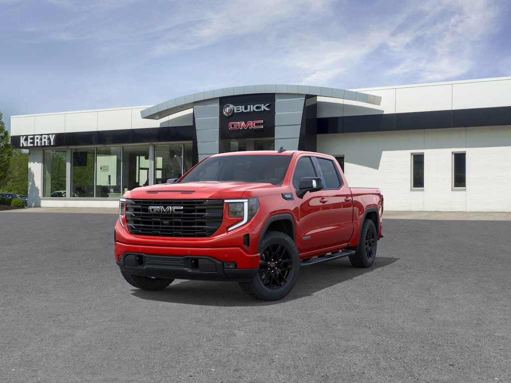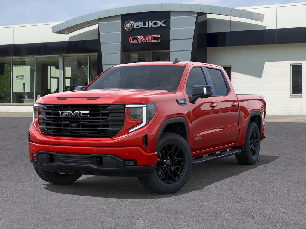 Cardinal Red 2026 GMC Sierra 1500 Elevation 4WD 10-Speed Automatic EcoTec3 5.3L V8 10-Speed Automatic, 4WD, Black Leather, 120-Volt Bed Mounted Power Outlet, 120-Volt Interior Power Outlet, 2 Charge/Data USB Ports, 2 Type-C Charge-Only Rear USB Ports, 6-Speaker Audio System Feature, Adaptive Cruise Control, Auto-Locking Rear Differential, Color-Keyed Carpeting Floor Covering, Deep-Tinted Glass, Dual Exhaust System, Electric Rear-Window Defogger, Elevation Premium Package, Front Frame-Mounted Black Recovery Hooks, Front Rubberized-Vinyl Floor Mats, HD Rear Vision Camera, HD Surround Vision, Heavy-Duty Air Filter, High Capacity Suspension Package, High Gloss Black Mirror Caps, Hill Descent Control, Hitch Guidance, Hitch View, Integrated Trailer Brake Controller, Leather-Appointed Seat Trim, LED Cargo Area Lighting, Navigation System, Off-Road Suspension, OnStar Services Capable, Perimeter Lighting, Power Door Locks, Power Sunroof, Preferred Equipment Group 3SB, Preferred Package, Premium Bose 7-Speaker Sound System, Push Button Start, Rear Cross Traffic Braking, Rear Pedestrian Detection, Rear Rubberized-Vinyl Floor Mats, Rear Wheelhouse Liners, Remote Vehicle Starter System, Sierra Safety Plus Package, Spray-on Pickup Bedliner with GMC Logo, Steering Wheel Audio Controls, Trailer Camera Provisions, Trailer Side Blind Zone Alert, Trailering Package, Universal Home Remote, Wi-Fi Hotspot Capable, Wireless Apple CarPlay/Wireless Android Auto, Wireless Charging, X31 Hard Badge, X31 Off-Road Package.