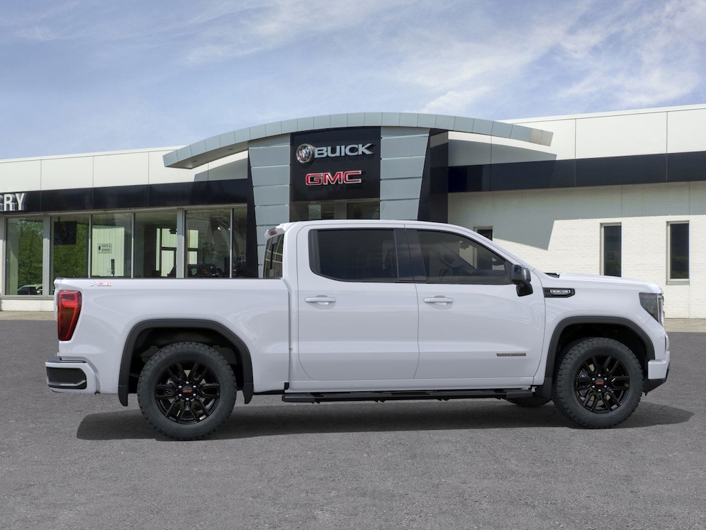 Summit White 2026 GMC Sierra 1500 Elevation 4WD 10-Speed Automatic EcoTec3 5.3L V8 10-Speed Automatic, 4WD, Black Leather, 120-Volt Bed Mounted Power Outlet, 120-Volt Interior Power Outlet, 2 Charge/Data USB Ports, 2 Type-C Charge-Only Rear USB Ports, 6-Speaker Audio System Feature, Adaptive Cruise Control, Auto-Locking Rear Differential, Color-Keyed Carpeting Floor Covering, Deep-Tinted Glass, Dual Exhaust System, Electric Rear-Window Defogger, Elevation Premium Package, Front Frame-Mounted Black Recovery Hooks, Front Rubberized-Vinyl Floor Mats, HD Rear Vision Camera, HD Surround Vision, Heavy-Duty Air Filter, High Capacity Suspension Package, High Gloss Black Mirror Caps, Hill Descent Control, Hitch Guidance, Hitch View, Integrated Trailer Brake Controller, Leather-Appointed Seat Trim, LED Cargo Area Lighting, Off-Road Suspension, OnStar Services Capable, Perimeter Lighting, Power Door Locks, Preferred Equipment Group 3SB, Preferred Package, Premium Bose 7-Speaker Sound System, Push Button Start, Rear Cross Traffic Braking, Rear Pedestrian Detection, Rear Rubberized-Vinyl Floor Mats, Rear Wheelhouse Liners, Remote Vehicle Starter System, Sierra Safety Plus Package, Spray-on Pickup Bedliner with GMC Logo, Steering Wheel Audio Controls, Trailer Camera Provisions, Trailer Side Blind Zone Alert, Trailering Package, Universal Home Remote, Wi-Fi Hotspot Capable, X31 Hard Badge, X31 Off-Road Package.