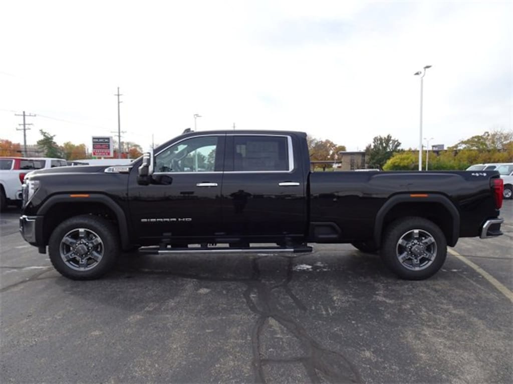 Onyx Black 2026 GMC Sierra 2500HD SLT 4WD 10-Speed Automatic Duramax 6.6L V8 Turbodiesel 10-Speed Automatic, 4WD, Black Leather, 120-Volt Bed Mounted Power Outlet, 120-Volt Instrument Panel Power Outlet, 2 Charge-Only Rear USB Ports, 2 Charge/Data USB Ports, 2 Charge/Data USB Ports Inside Center Console, 2-Speed Active Transfer Case, 6-Speaker Audio System Feature, 6 Rectangular Chromed Tubular Assist Steps, Adaptive Cruise Control, Bed View Camera w/2 Trailer Camera Provisions, Bose Premium 7-Speaker Sound System, Chrome Surround Grille w/Chrome Insert Bars, Deep-Tinted Glass, Electric Rear-Window Defogger, Floor-Mounted Center Console, Front Bucket Seats, Front Rain-Sensing Wipers, Gooseneck/5th Wheel Prep Package, HD Surround Vision, Heated 2nd Row Outboard Seats, Heated Driver & Front Outboard Passenger Seats, Keyless Open & Start, LED Cargo Area Lighting, LED Smoked Amber Roof Marker Lamps, Manual Tilt-Wheel/Telescoping Steering Column, OnStar Services Capable, Power Front Passenger Windows w/Express Up/Down, Power Sliding Rear Window w/Defogger, Power Sunroof, Preferred Equipment Group 4SA, Push Button Start, Rear Cross Traffic Alert, Rear Wheelhouse Liners, Remote Vehicle Starter System, Safety Alert Seat, Sierra HD Pro Safety Plus Package, SiriusXM w/360L Trial Subscription, SLT Convenience Package, SLT Preferred Package, SLT Premium Package, Spray-On Pickup Bedliner w/GMC Logo, Steering Wheel Audio Controls, Suspension Package, Trailer Cam Provisions & Trailer Viewing Software, Trailer Side Blind Zone Alert, Ultrasonic Front & Rear Park Assist, Unauthorized Entry Theft-Deterrent System, Universal Home Remote, Ventilated Driver & Front Passenger Seats, Wireless Charging, Wireless Phone Projection.