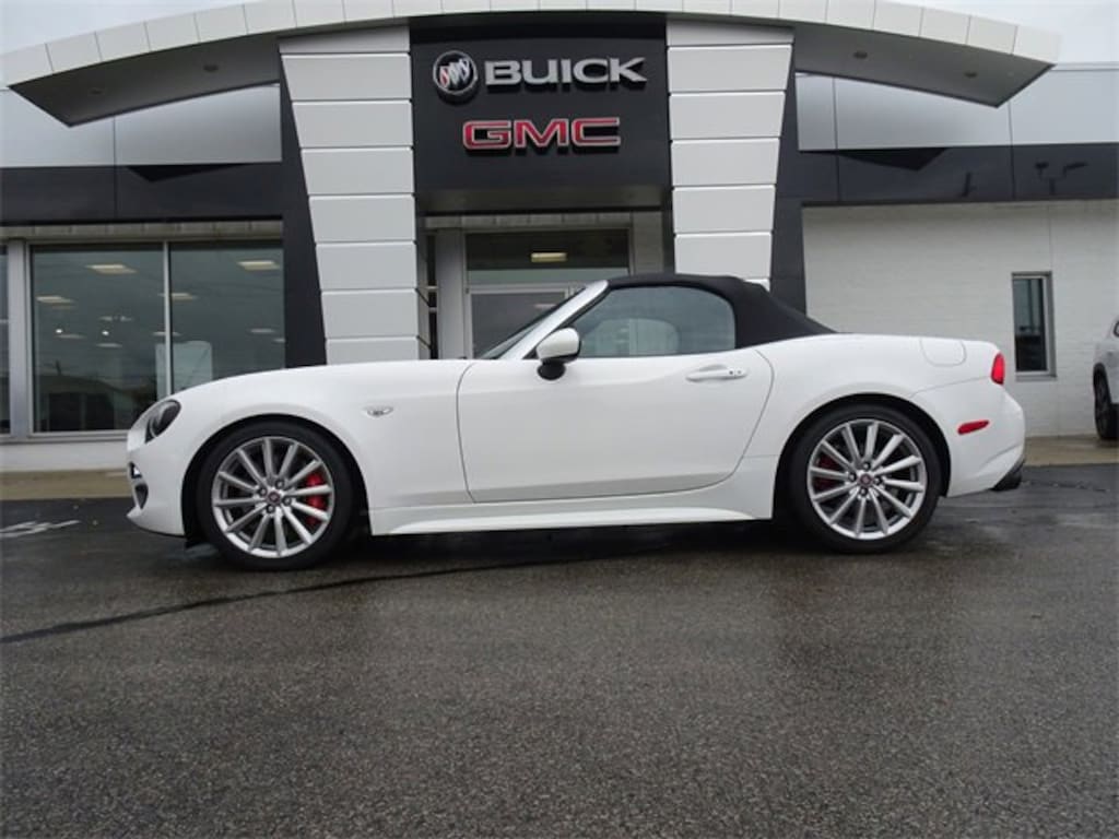 Bianco Gelato White 2017 Fiat 124 Spider Lusso RWD 6-Speed Manual 1.4L I4 16V MultiAir Turbocharged 124 Spider Lusso, 2D Convertible, 1.4L I4 16V MultiAir Turbocharged, 6-Speed Manual, RWD, Bianco Gelato White, Nero (Black) Leather, 4-Wheel Disc Brakes, 6 Speakers, ABS brakes, Air Conditioning, Alloy wheels, Automatic temperature control, Dual front impact airbags, Dual front side impact airbags, Four wheel independent suspension, Front anti-roll bar, Low tire pressure warning, Occupant sensing airbag, Power windows, Quick Order Package 21S, Rear anti-roll bar, Rear window defroster, Remote keyless entry, Speed-sensing steering, Traction control.******** KERRY FORD/BUICK/GMC ** 155 WEST KEMPER ROAD, SPRINGDALE OHIO 45246 ****** We are in need of used vehicles and will pay a premium for your 2012 or newer trade-in. Special offers cannot be combined.****WE CAN HELP WITH FINANCING NO MATTER YOUR CREDIT HISTORY!!!!!********Serving the greater Cincinnati community 45014,45248,45247,45231,41042,45103,45011,45056,45202. Odometer is 9577 miles below market average! 26/35 City/Highway MPGProudly Serving: Cincinnati, Dayton, Columbus, Louisville, Lexington, Indianapolis, Hamilton, Florence, Alexandria, Beavercreek, Springdale, West Chester, Monroe, Fairfield, Kenwood, Newport and all of greater Cincinnati Ohio, Indiana, and Northern Kentucky 45066, 45246, 45242, 45069, 45040, 45044, 45042, 45011, 45013, 45015, 45240, 45241, 45037, 45036, 45014.