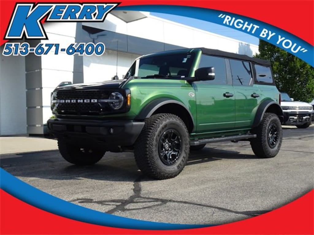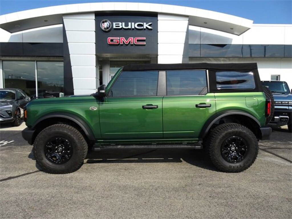 Eruption Green Metallic 2022 Ford Bronco Wildtrak 4WD 10-Speed Automatic 2.7L EcoBoost V6 Bronco Wildtrak, 4D Sport Utility, 2.7L EcoBoost V6, 10-Speed Automatic, 4WD, Eruption Green Metallic, Black Onyx Leather, 12 LCD Capacitive Touchscreen w/Swipe Capability, 2 Smart Charging USB Ports In Dashboard, 360-Degree Camera, Adaptive Cruise Control, Additional Sound Deadening, Alloy wheels, Connected Built-In Navigation, Equipment Group 354A Lux Package, Evasive Steering Assist, Front Parking Sensors, Heated Steering Wheel, Information on Demand Panel, Radio: B&O Sound System by Bang & Olufsen, Sideview Mirrors, Universal Garage Door Opener, Wireless Charging Pad.