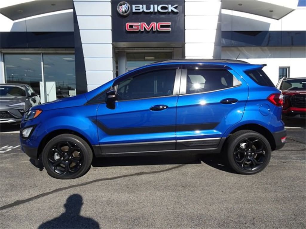 CARFAX One-Owner. Clean CARFAX. Lightning Blue Metallic 2022 Ford EcoSport SES 4WD 6-Speed Automatic 2.0L I4 Ti-VCT GDI EcoSport SES, 4D Sport Utility, 2.0L I4 Ti-VCT GDI, 6-Speed Automatic, 4WD, Lightning Blue Metallic, Ebony Black Cloth, 4-Wheel Disc Brakes, ABS brakes, Air Conditioning, Automatic temperature control, Brake assist, Cargo Mat, Dual front impact airbags, Dual front side impact airbags, Electronic Stability Control, Emergency communication system: SYNC 3 911 Assist, Equipment Group 300A, Front & Rear Floor Liners, Front anti-roll bar, Front wheel independent suspension, Interior Protection Package, Knee airbag, Low tire pressure warning, Navigation System, Occupant sensing airbag, Overhead airbag, Power driver seat, Power moonroof, Power windows, Radio: AM/FM/MP3 Stereo, Rear window defroster, Remote keyless entry, SiriusXM Radio, Speed-sensing steering, Steering wheel mounted audio controls, SYNC 3 Communications & Entertainment System, Traction control, Wheels: 17 Black-Painted Aluminum.******** KERRY FORD/BUICK/GMC ** 155 WEST KEMPER ROAD, SPRINGDALE OHIO 45246 ****** We are in need of used vehicles and will pay a premium for your 2012 or newer trade-in. Special offers cannot be combined.****WE CAN HELP WITH FINANCING NO MATTER YOUR CREDIT HISTORY!!!!!******** Odometer is 8406 miles below market average! 23/29 City/Highway MPGProudly Serving: Cincinnati, Dayton, Columbus, Louisville, Lexington, Indianapolis, Hamilton, Florence, Alexandria, Beavercreek, Springdale, West Chester, Monroe, Fairfield, Kenwood, Newport and all of greater Cincinnati Ohio, Indiana, and Northern Kentucky 45066, 45246, 45242, 45069, 45040, 45044, 45042, 45011, 45013, 45015, 45240, 45241, 45037, 45036, 45014.
