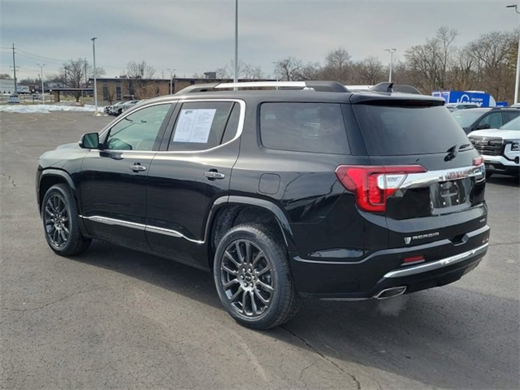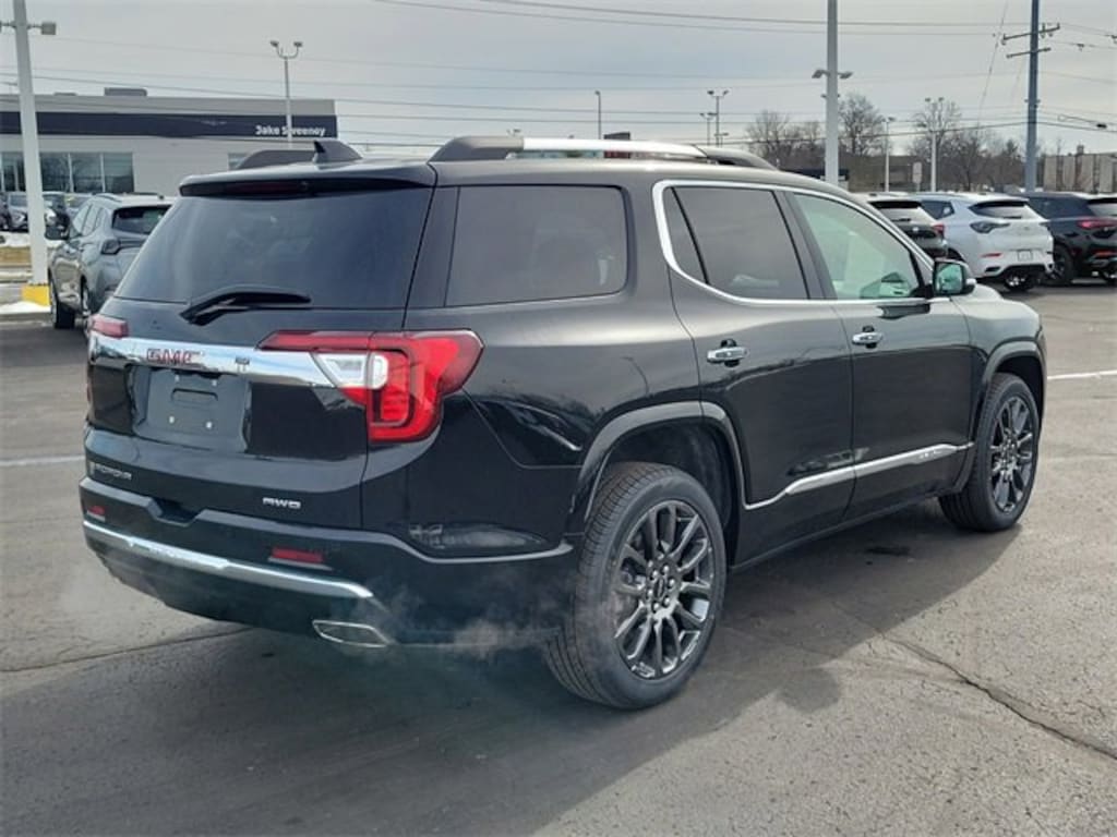 Clean CARFAX. Ebony Twilight Metallic 2023 GMC Acadia Denali AWD 9-Speed Automatic 3.6L V6 SIDI Acadia Denali, 4D Sport Utility, 3.6L V6 SIDI, 9-Speed Automatic, AWD, Ebony Twilight Metallic, Jet Black Leather, 1st & 2nd Row All-Weather Floor Liner (LPO), 3rd Row All-Weather Floor Liner (LPO), 4-Wheel Disc Brakes, 8 Speakers, 8-Way Power Driver Seat Adjuster, 8-Way Power Passenger Seat Adjuster, ABS brakes, Adaptive Cruise Control, Adaptive Ride Control, Air Conditioning, Auto High-beam Headlights, Automatic temperature control, Black Diamond Edition, Bose Premium 8-Speaker Audio System Feature, Brake assist, Delay-off headlights, Denali Technology Package, Denali Ultimate Package, Dual front impact airbags, Dual front side impact airbags, Dual SkyScape 2-Panel Power Sunroof, Electronic Stability Control, Emergency communication system: OnStar and GMC connected services capable, Enhanced Automatic Emergency Braking, Floor Liner Package (LPO), Four wheel independent suspension, Front anti-roll bar, Front dual zone A/C, HD Surround Vision, Heads-Up Display, Heated Driver & Front Passenger Seats, Heated front seats, Heated rear seats, Heavy-Duty Cooling System, Hitch Guidance w/Hitch View, Integrated Cargo Liner (LPO), Knee airbag, Low tire pressure warning, Memory seat, Navigation System, Occupant sensing airbag, Overhead airbag, Panic alarm, Perforated Leather-Appointed Seat Trim, Performance Ride & Handling Suspension, Preferred Equipment Group 5SA, Rear air conditioning, Rear Camera Mirror, Rear Camera Mirror Washer, Rear window defroster, Remote keyless entry, Speed control, Speed-sensing steering, Steering wheel memory, Steering wheel mounted audio controls, Traction control, Trailering Assist Guidelines, Trailering Package, Wheels: 20 Aluminum Paint w/After Midnight Finish.
