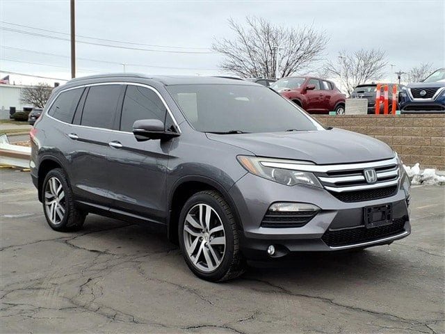 Modern Steel Metallic 2016 Honda Pilot Touring AWD 9-Speed Automatic 3.5L V6 24V SOHC i-VTEC AWD, 20" Alloy Wheels, 3rd row seats: split-bench, Brake assist, Electronic Stability Control, Exterior Parking Camera Rear, Four wheel independent suspension, Heated Front Bucket Seats, Leather-Trimmed Seats, Power Liftgate, Power Moonroof, Remote keyless entry, Steering wheel mounted audio controls, Traction control.