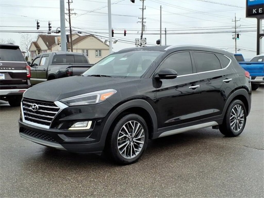 Home of the Lifetime Powertrain Protection! Proudly Serving: Cincinnati, Dayton, Lexington, Louisville, Hamilton, Mason, Sharonville, Beavercreek, Springdale, West Chester, Monroe, Fairfield, Kenwood, Newport, Covington, Fort Mitchell, Fort Thomas, Fort Wright, Independence, Florence, Union, Alexandria, Butler, Falmouth, Dry Ridge, and all of greater Cincinnati, Ohio, Indiana, and Northern Kentucky. 2021 Hyundai Tucson Limited Black Noir Pearl ANDROID AUTO/APPLE CARPLAY, BLUETOOTH, LANE ASSIST, TOUCH TO START, TOUCH SCREEN, HEATED SEATS, BACK UP CAMERA, LEATHER, ALL WHEEL DRIVE, ONE OWNER, AWD. Clean CARFAX. 21/26 City/Highway MPG