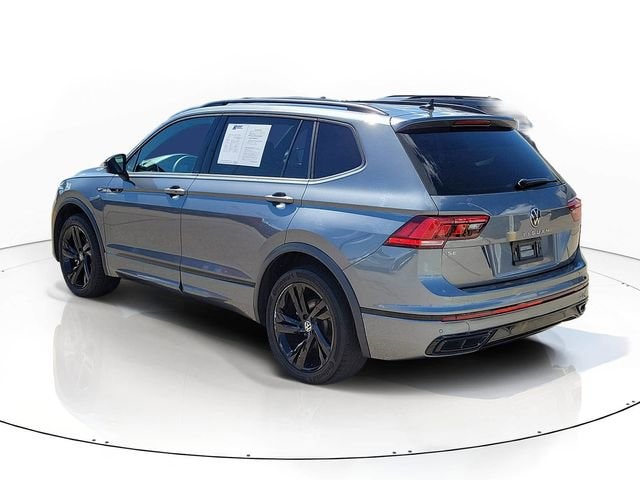 Clean CARFAX. Platinum Gray Metallic 2023 Volkswagen Tiguan 2.0T SE R-Line Black FWD 8-Speed Automatic with Tiptronic 2.0L TSI DOHC Tiguan 2.0T SE R-Line Black, 4D Sport Utility, 2.0L TSI DOHC, 8-Speed Automatic with Tiptronic, FWD, Platinum Gray Metallic, Storm Gray w/Perforated Vienna Leather Seating Surfaces, 4-Wheel Disc Brakes, 4-Wheel Independent Suspension, 6 Speakers, ABS brakes, Air Conditioning, AM/FM radio: SiriusXM with 360L, Automatic temperature control, Brake assist, Delay-off headlights, Dual front impact airbags, Dual front side impact airbags, Electronic Stability Control, Emergency communication system: VW Car-Net Safe & Secure 5-year, Exterior Parking Camera Rear, Four wheel independent suspension, Front anti-roll bar, Front dual zone A/C, Fully automatic headlights, Low tire pressure warning, Occupant sensing airbag, Overhead airbag, Panic alarm, Power Liftgate, Power moonroof, Power windows, Radio data system, Rear anti-roll bar, Rear window defroster, Remote keyless entry, Speed-sensing steering, Steering wheel mounted audio controls, Traction control, Wheels: 19 Black Painted Twin 5-Spoke Alloy.